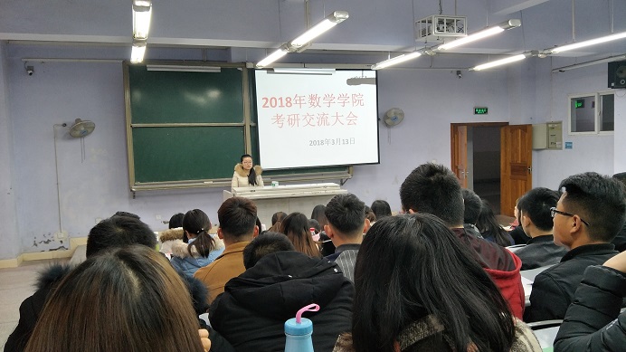 为了进一步提高我院2015级学生的考研热情,明确考研目标,掌握相关考研技巧,了解更多考研信息。3月13日下午16:00,由数学学院主办的考研经验交流会在一教楼111教室举行。本次交流会诚邀了2017年考研中成绩优异、经验丰富的14级同学苏瑶、陶莎、李川东、万志豪,本次交流会由刘双老师主持。