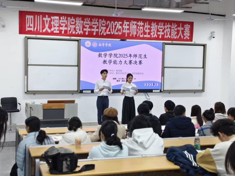 为进一步提升我院数学与应用数学专业学生的教学实践能力与综合素养,夯实未来教师的基本功,教师技能协会于11月26日14时在东区A318举办了“数学学院2025年师范生教学能力大赛”。大赛邀请了唐海军老师、王佳佳老师、陈芳芳老师、陈佳老师、教师技能协会指导教师西尔艾力·努尔买买提、专职辅导员夏涌繁老师等担任评委以及200余名师生观摩,大赛由李浩,许馨月主持。