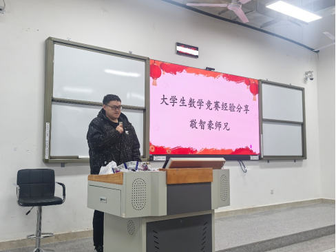 为助力我院学生明晰全国大学生数学竞赛的备赛方向、提高备考效率,我院数学竞赛协会于12月27日举办全国大学生数学竞赛经验分享会。敬智豪(2022级2班)受邀担任主讲人,与学院80余名学生生展开深入交流与探讨。本次活动由段兮辰(25,1班)、范鑫源(25.2班)主持。